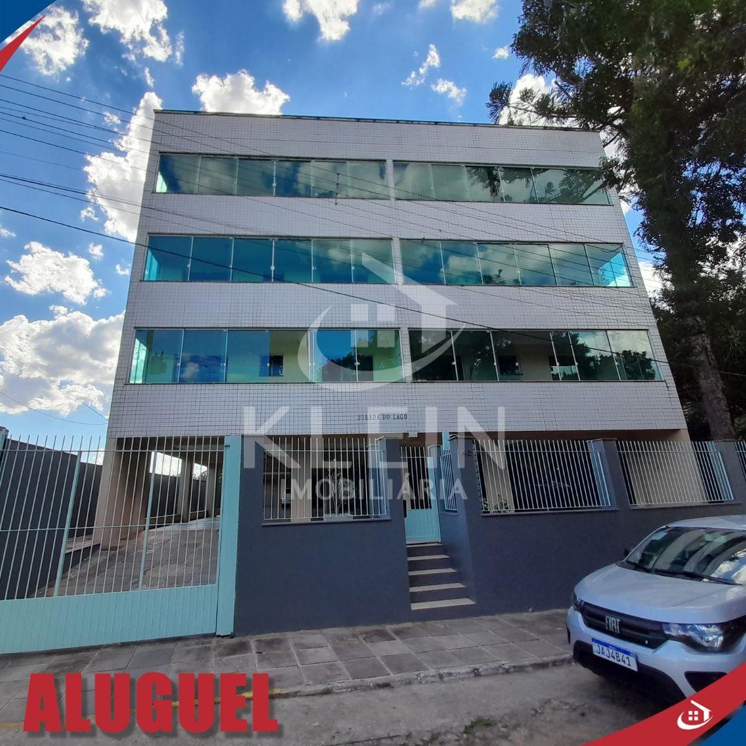Apartamento no Edifício Morada do Lago com 2 dormitórios, 1 sala/cozinha, 1 área de serviço com churrasqueira, 1 banheiro e 1 box de estacionamento.