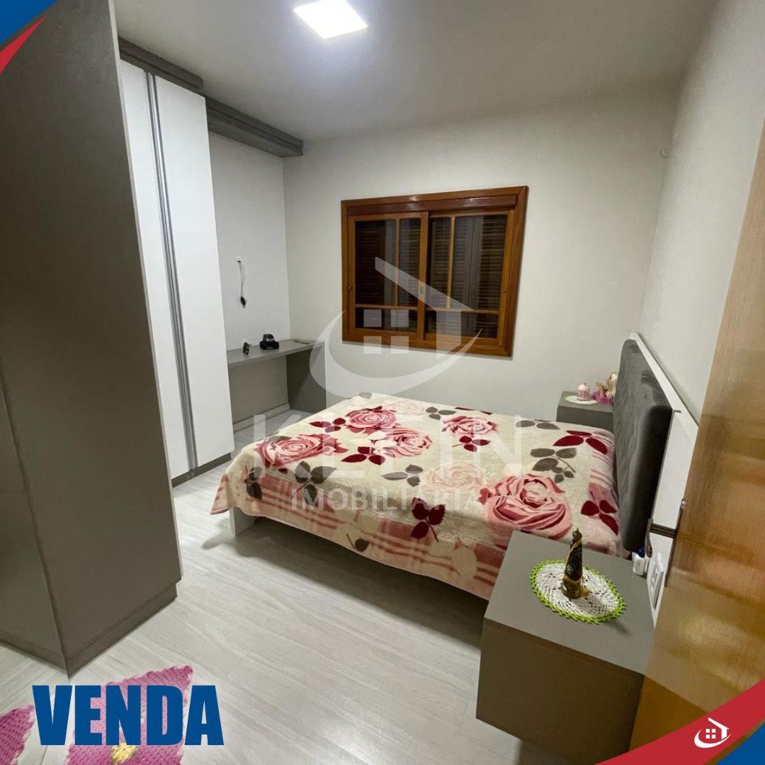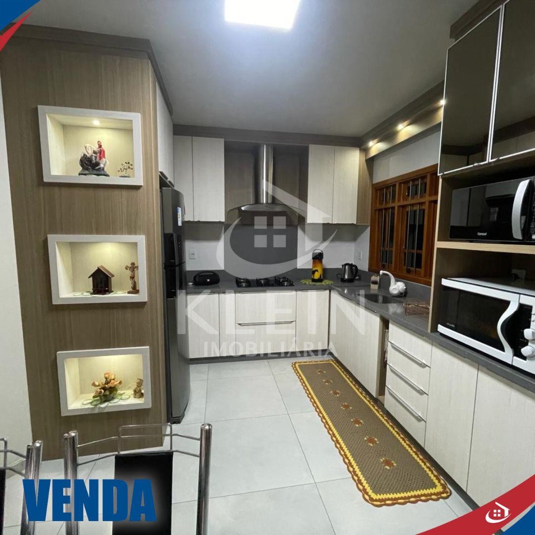 Possui 3 dormitórios, sala de estar, sala/cozinha integradas, 2 banheiros, lavanderia, varanda ampla, churrasqueira, garagem para 2 carros com portão eletrônico, anexo nos fundos para ferramentas, excelente padrão construtivo, laje, gesso, piso porcelanato e laminado, permanecem móveis sob medida.