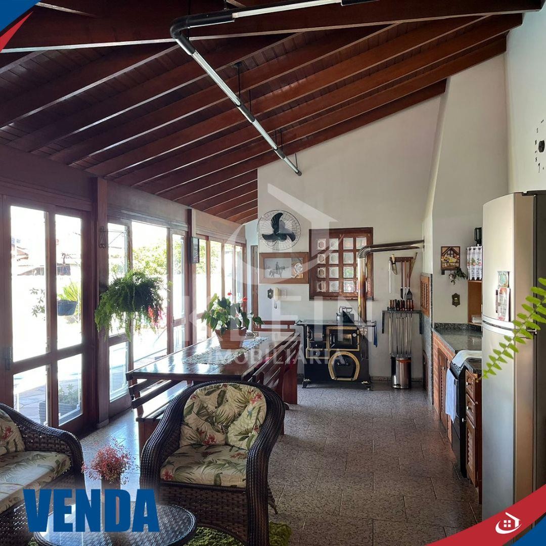 Possui 4 dormitórios sendo 1 suíte com móveis sob medida, sala de estar com lareira, cozinha, 2 banheiros, 2 churrasqueiras, lavanderia, garagem para 2 carros, poço artesiano, área gourmet, piscina e orta.