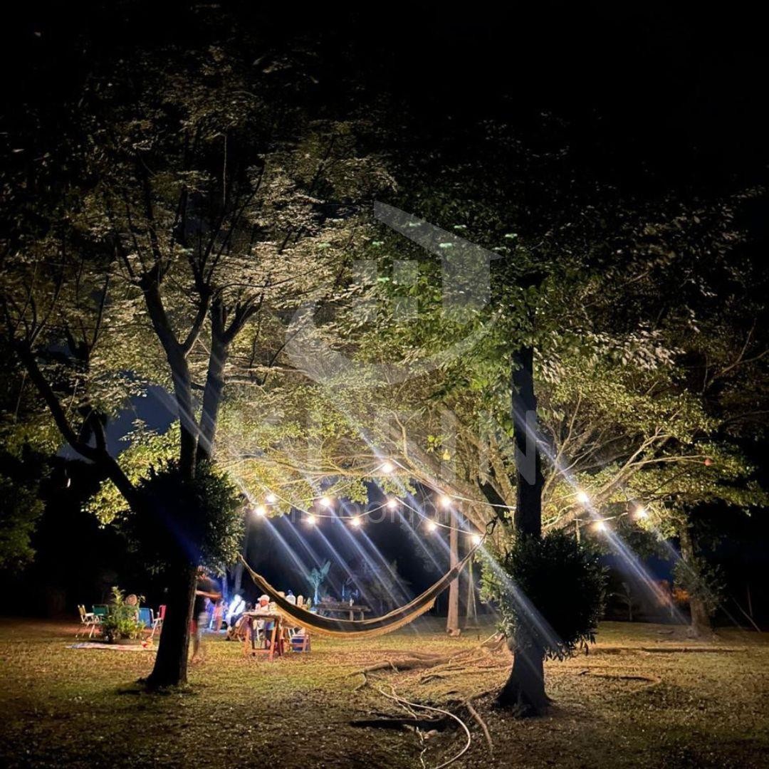 Com a possibilidade de dividir a área em opções de uso como: ( área plana pode ser usada para eventos, área nativa, onde tem uma trilha, podendo inclusive ser feito acampamentos, e mais uma área não desmatada).