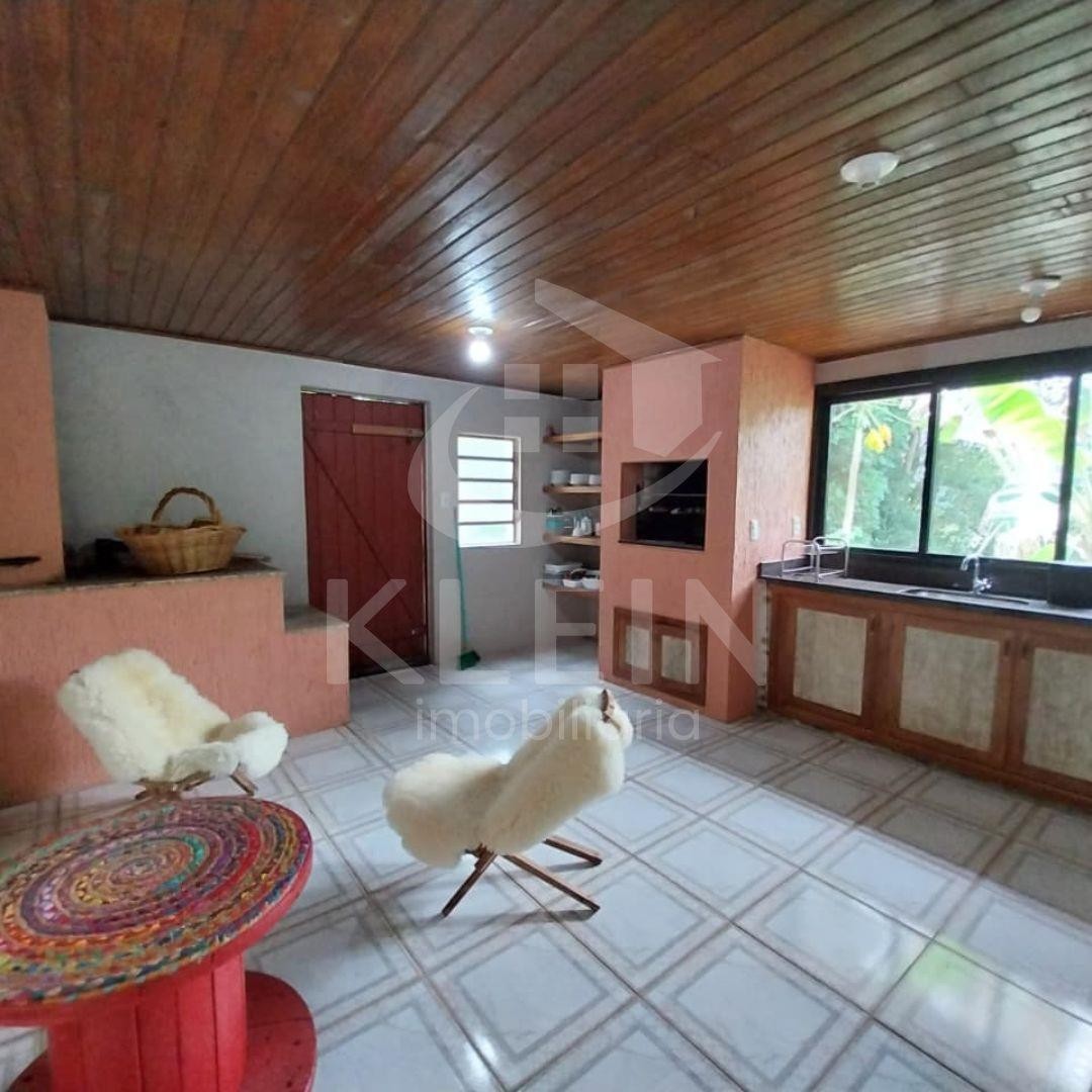 Com salão de festas rústico, com aproximadamente 180m² de área construida, com churrasqueira, fogão campeiro, 1 banheiro.
