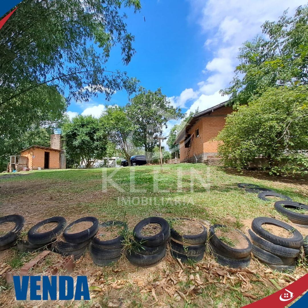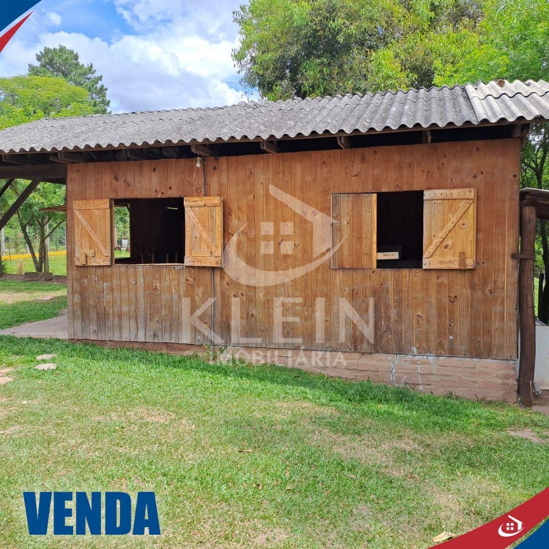 Possui um galpão e uma casa com 2 dormitórios, sala, cozinha, banheiro, área de serviço e área nos fundos fechada com vidro.