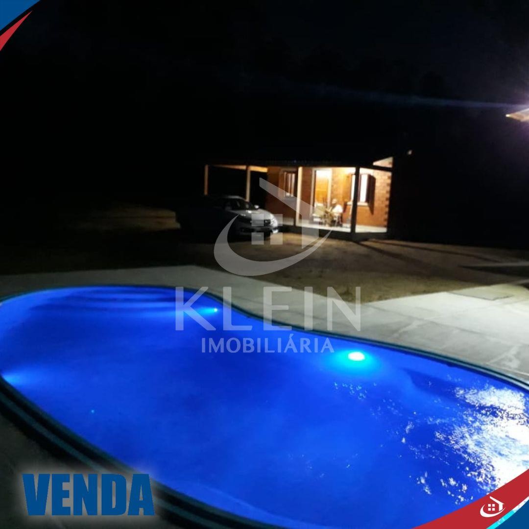 Quiosque com aprox. 143,00m² com garagem fechada, dormitório, banheiro, churrasqueira e fogão campeiro, piscina de 3,40 x 7,85 x 1.40 com 4 hidros e 4 leds coloridos comandados por controle remoto, piso porcelanato anti calor ao redor da piscina ligando ao quiosque;