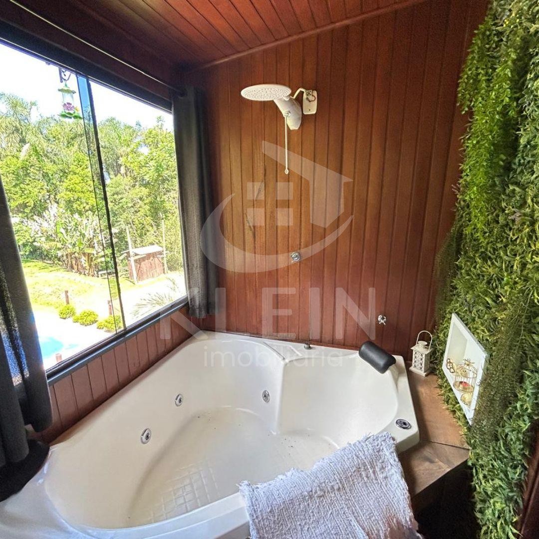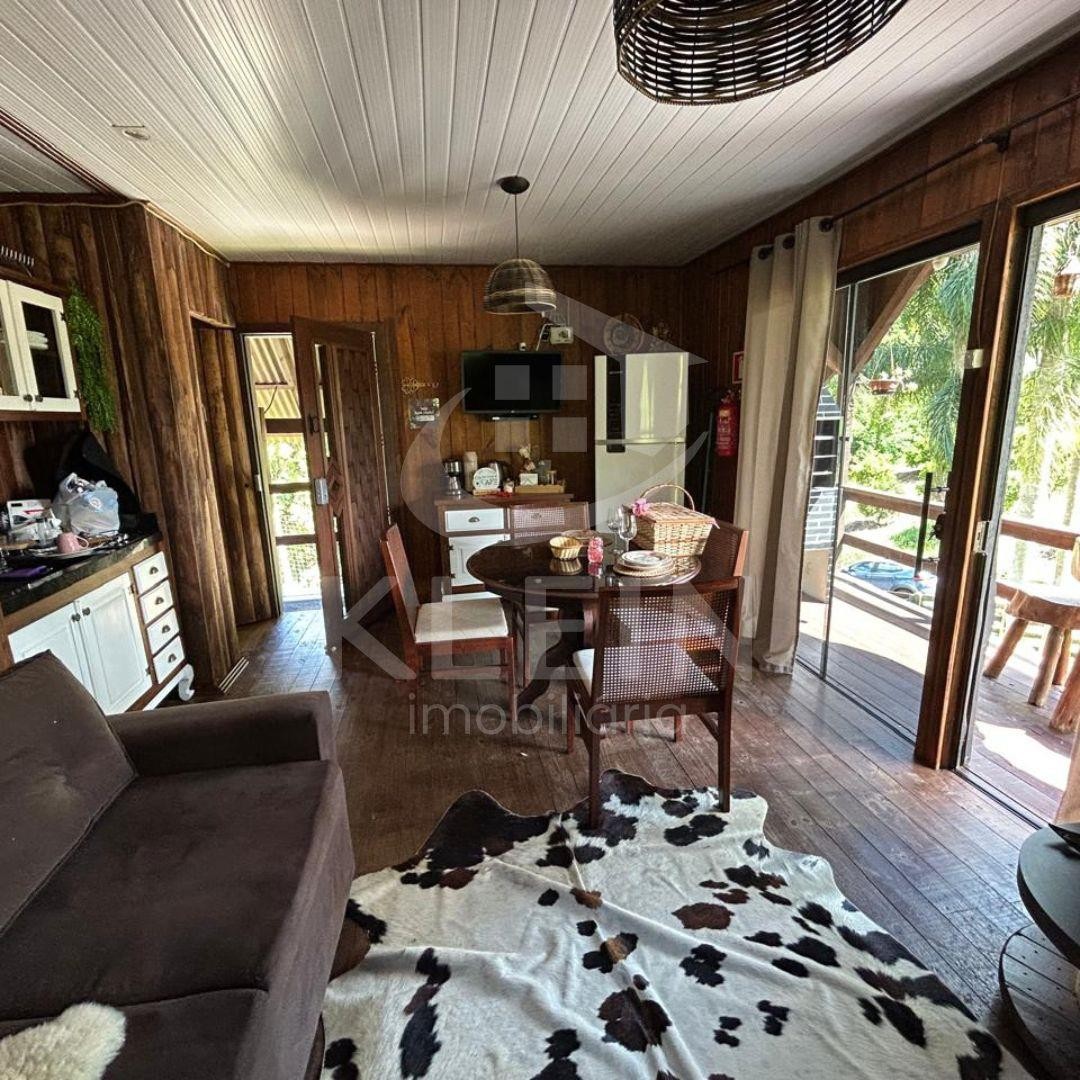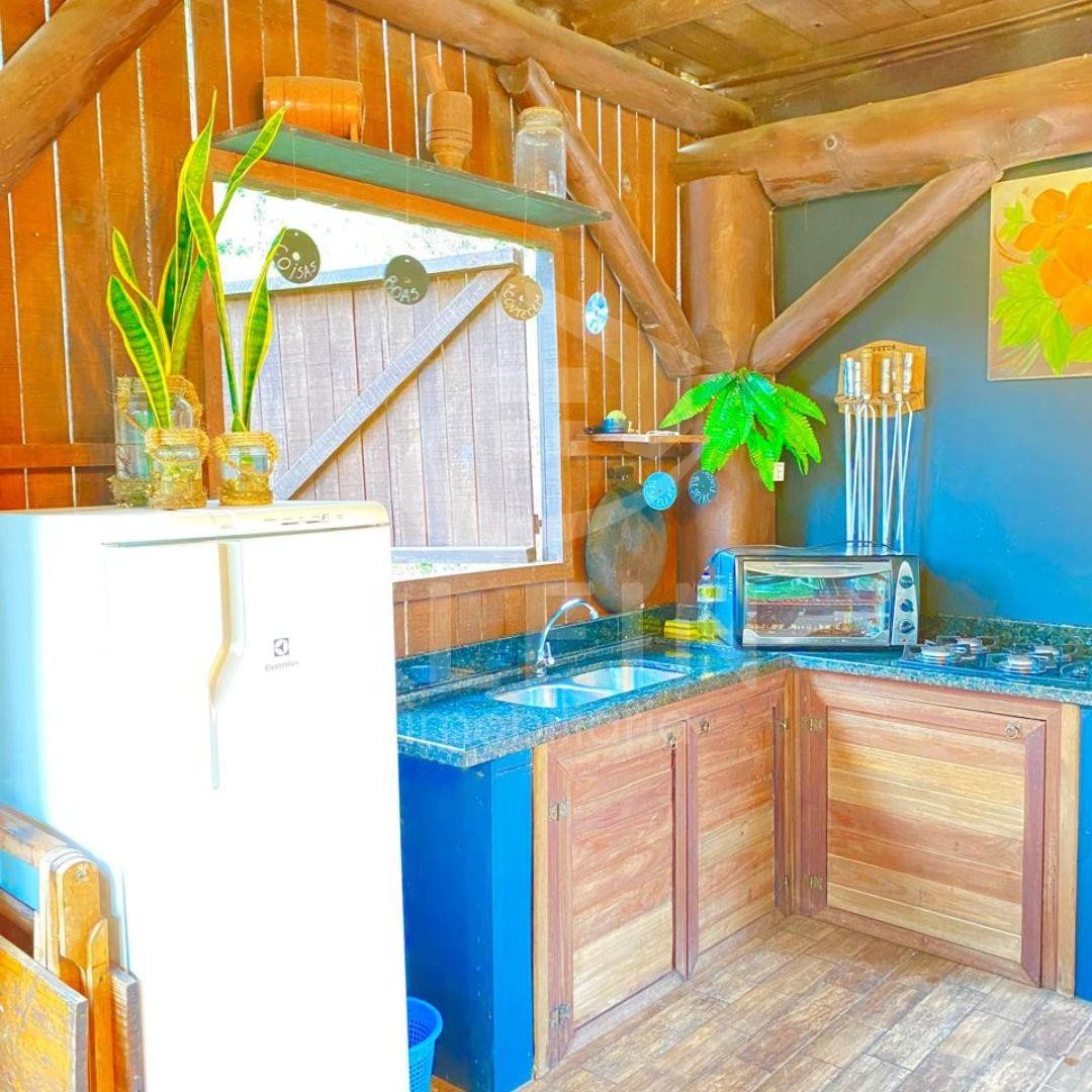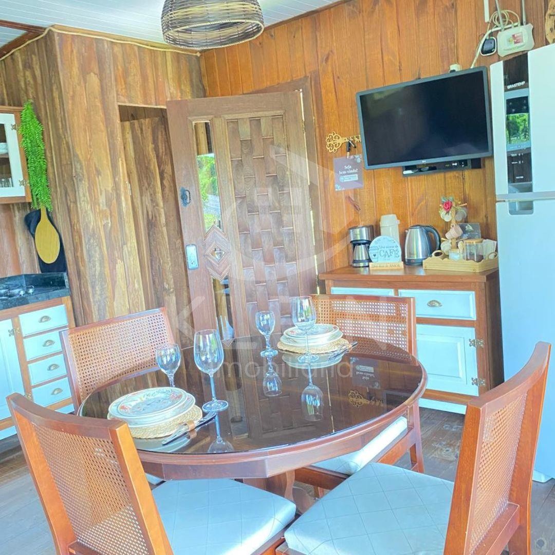 Conta com 2 dormitórios( sendo 1 suíte com banheira de hidromassagem dupla).sala e cozinha completa com fogão a lenha.