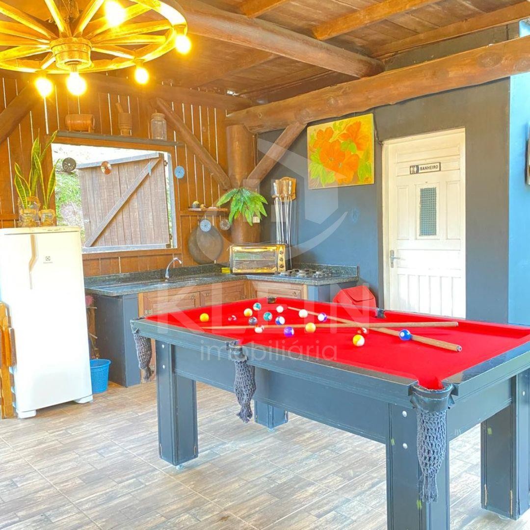 Parte inferior com cozinha, mesa de sinuca,churrasqueira e 1 banheiro completo.
