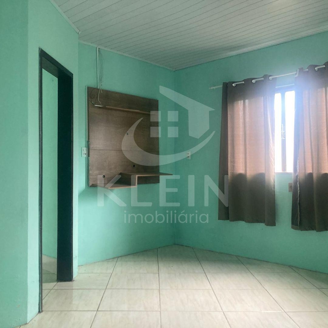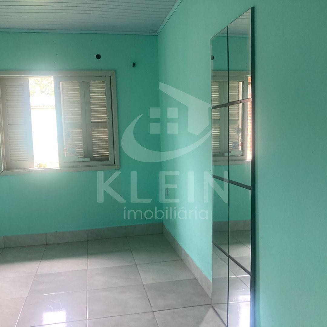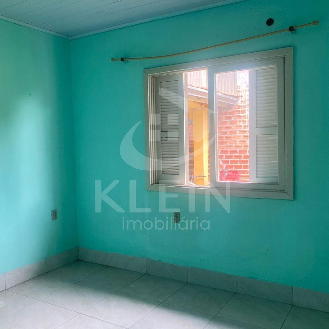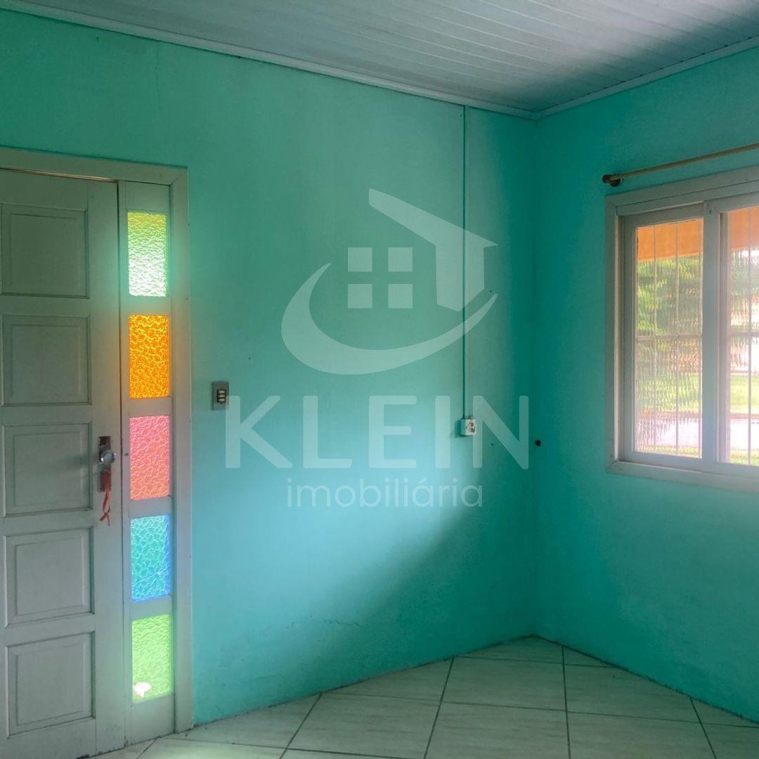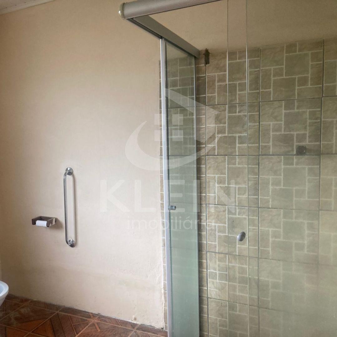 Casa em alvenaria com três dormitórios, dois banheiros, sala de estar e sala de jantar, ampla cozinha com churrasqueira.