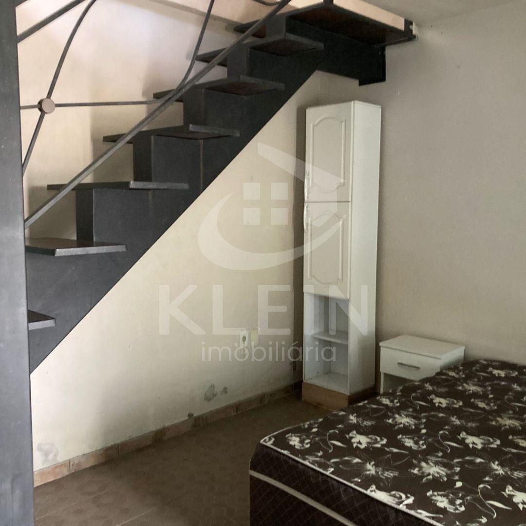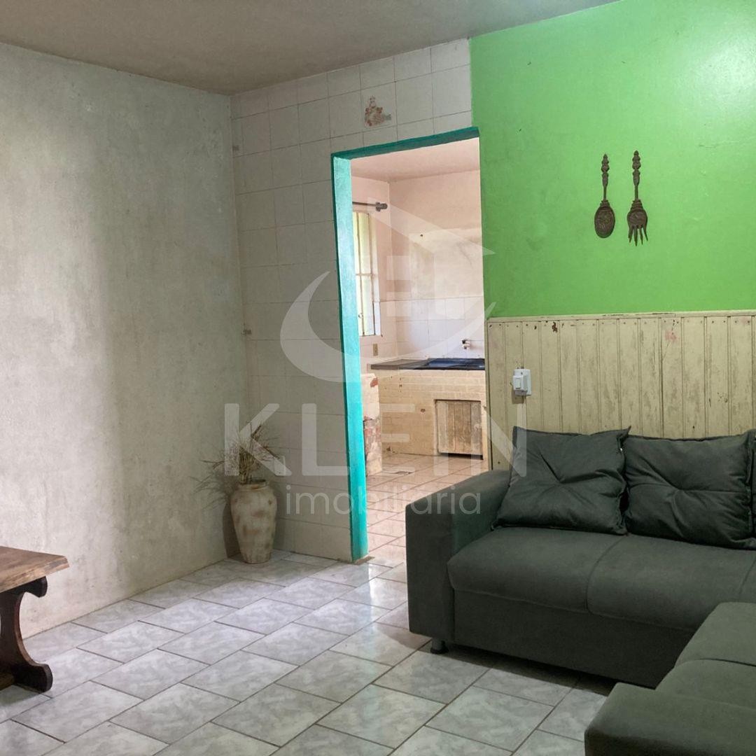 Casa em alvenaria com 01 dormitório com mezanino, 01 banheiro, 01 sala e ampla garagem com cozinha.