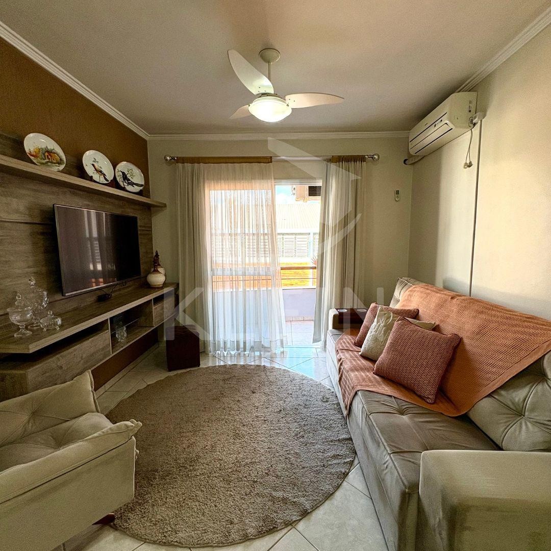 Apartamento amplo, com sala, cozinha e lavanderia integradas, sacada com churrasqueira, dois dormitórios, banheiro e box de garagem amplo.