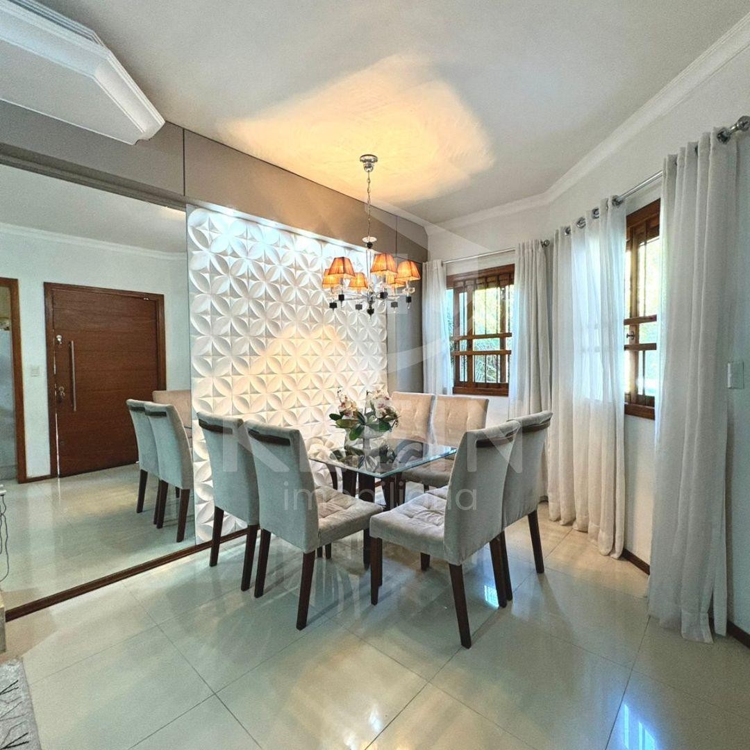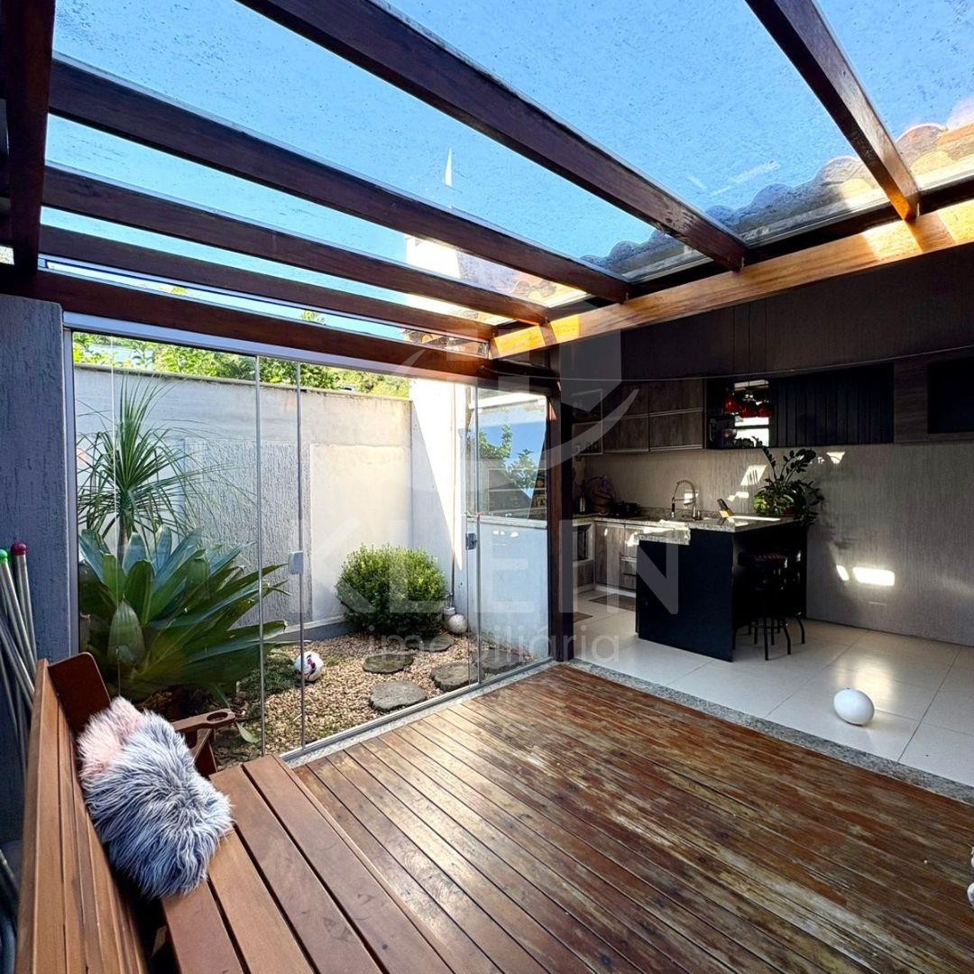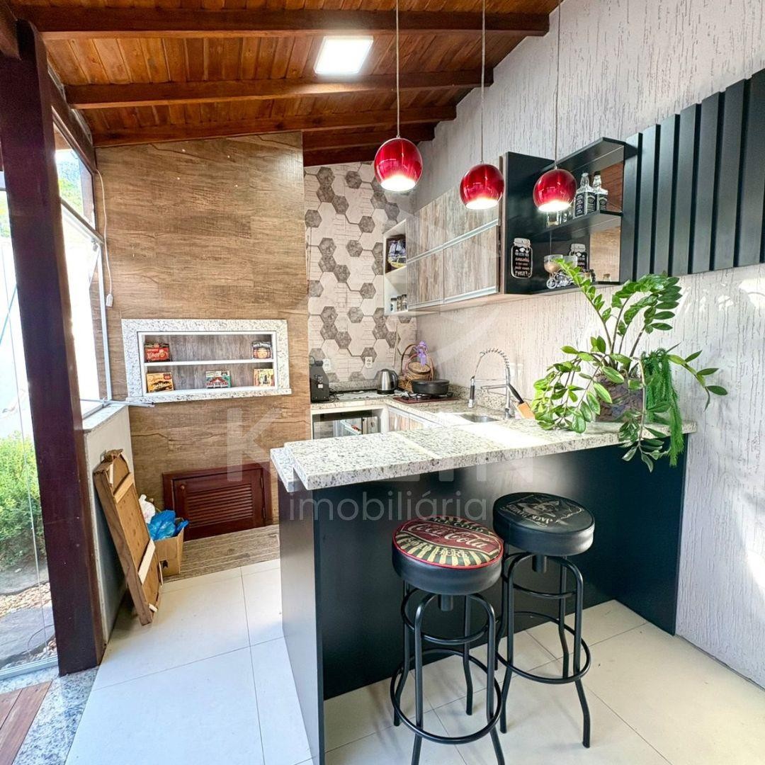 Casa plana e mobiliada, com 03 dormitórios, banheiro, sala de estar e jantar integradas com lareira a gás, cozinha, área de serviço, quiosque nos fundos com área gourmet e churrasqueira.