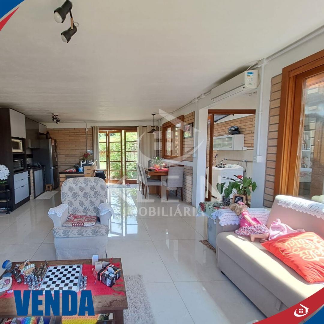 Casa de aprox. 70m², possui 2 dormitórios, sala/cozinha, banheiro, área de serviço e jardim de inverno, garagem/galpão.