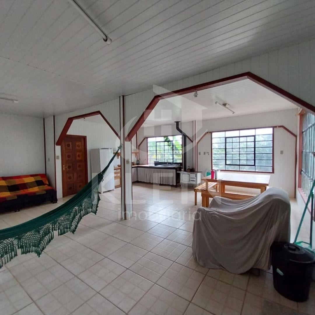 Com salão de festas rústico, com aproximadamente 180m² de área construida, com churrasqueira, fogão campeiro, 1 banheiro.