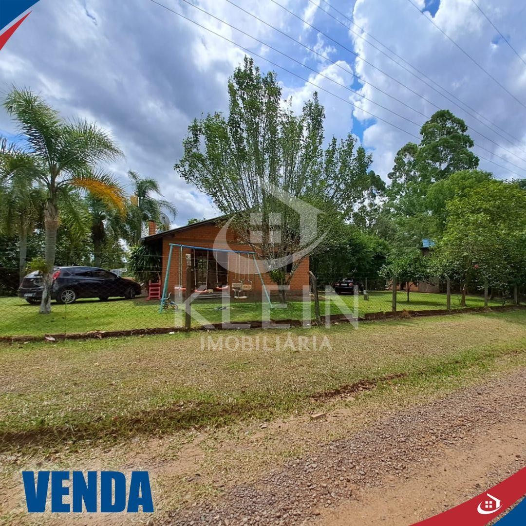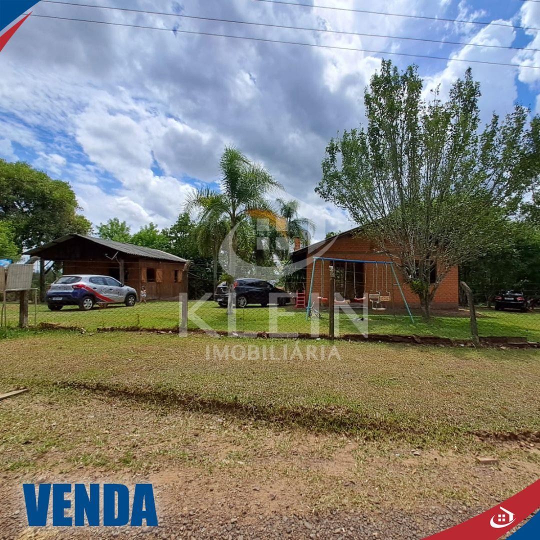 Possui um galpão e uma casa com 2 dormitórios, sala, cozinha, banheiro, área de serviço e área nos fundos fechada com vidro.
