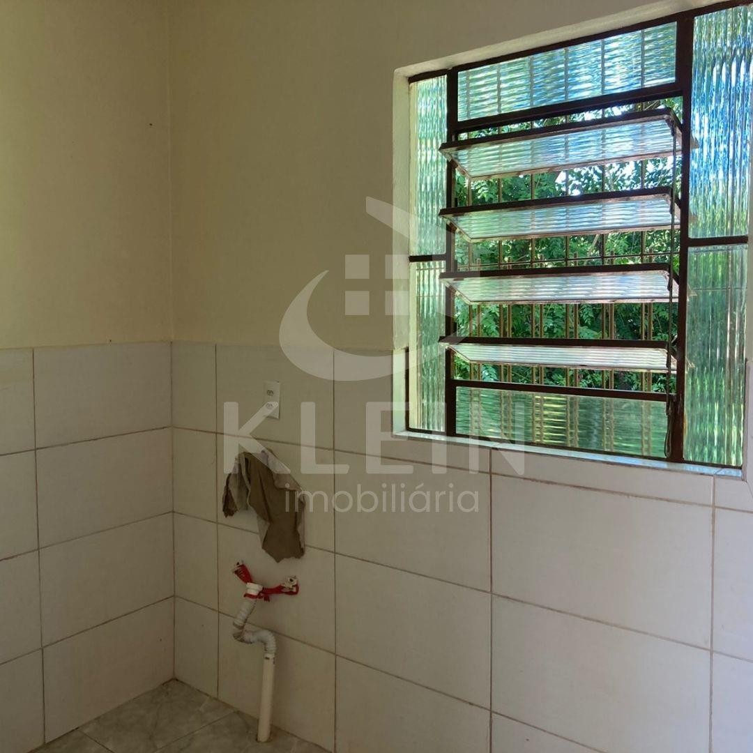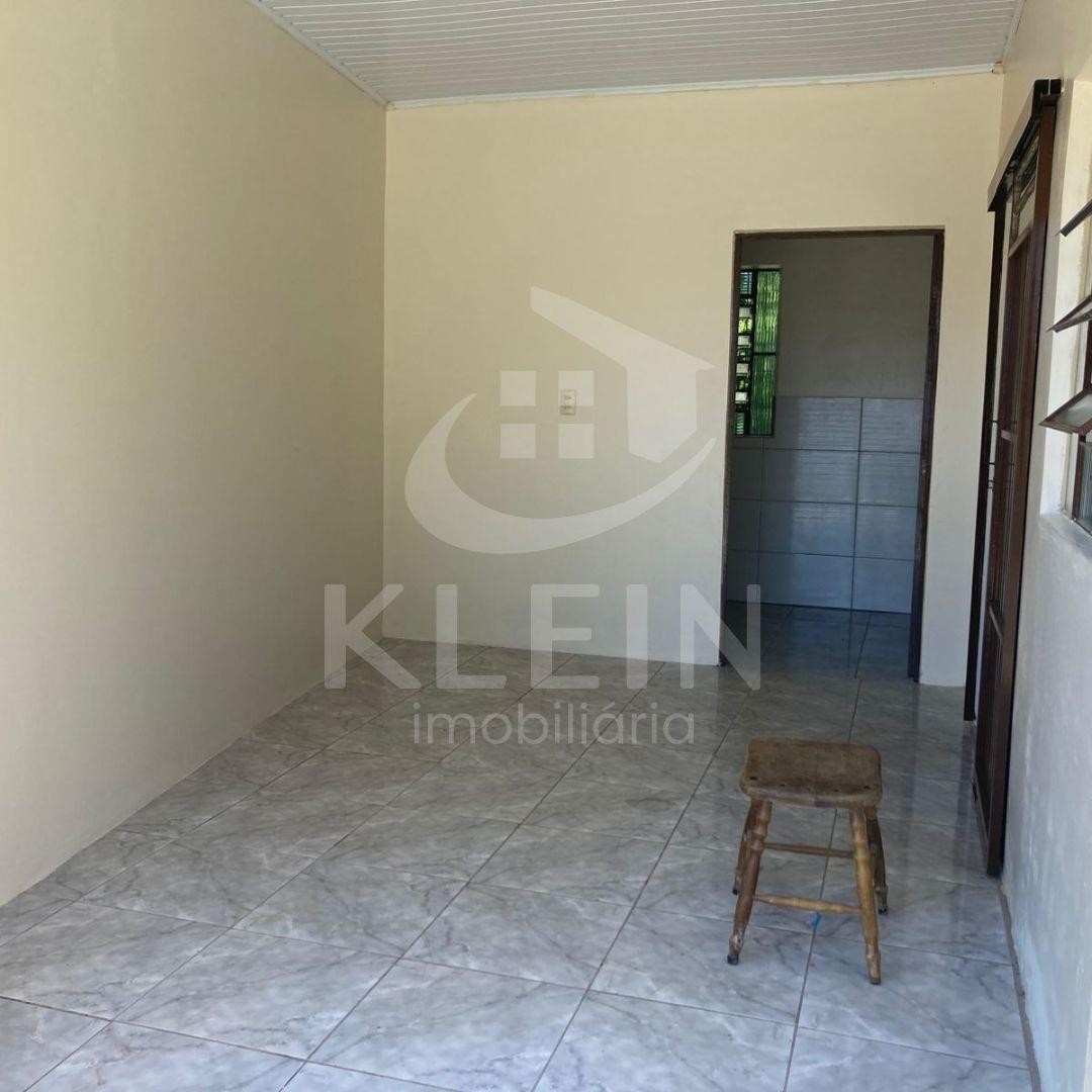 Casa em alvenaria com 2 dormitórios, 1 sala, 1 cozinha, 1 banheiro, 1 área de serviço e 1 garagem.