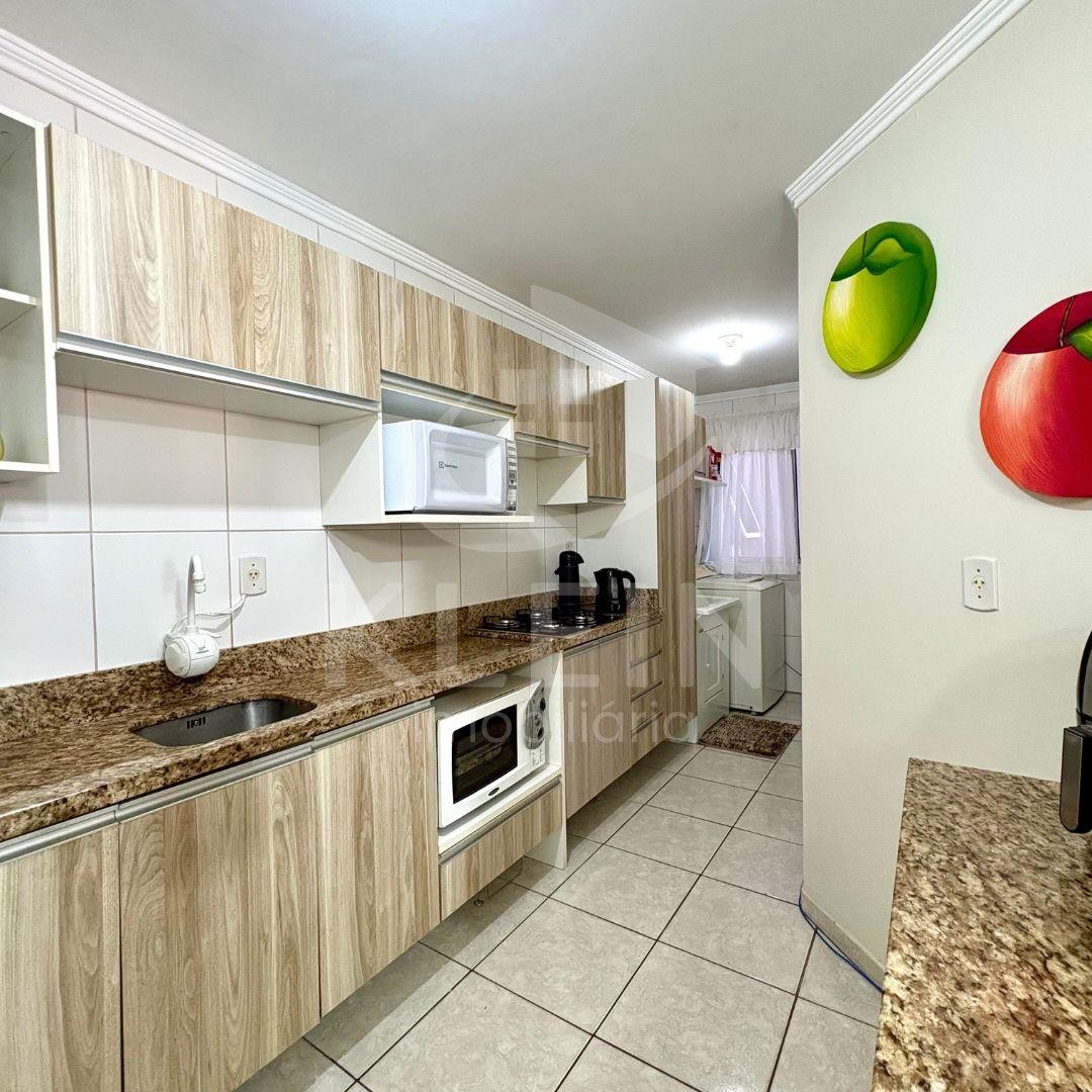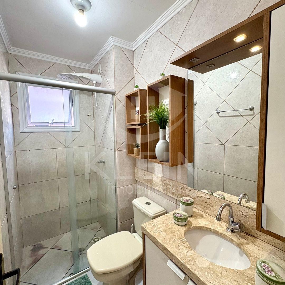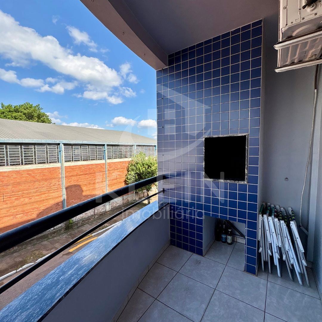 Apartamento amplo, com sala, cozinha e lavanderia integradas, sacada com churrasqueira, dois dormitórios, banheiro e box de garagem amplo.
